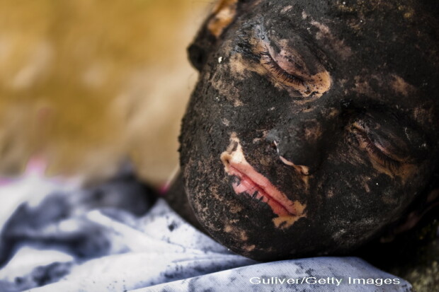 Vraciul, pe numele sau real Hermes Cifuentes, isi pune "pacientii" sa-si intinda mainile perpendicular pe corp, ca in scena crucificarii, dupa care ii acopera din cap pana in picioare cu noroi.